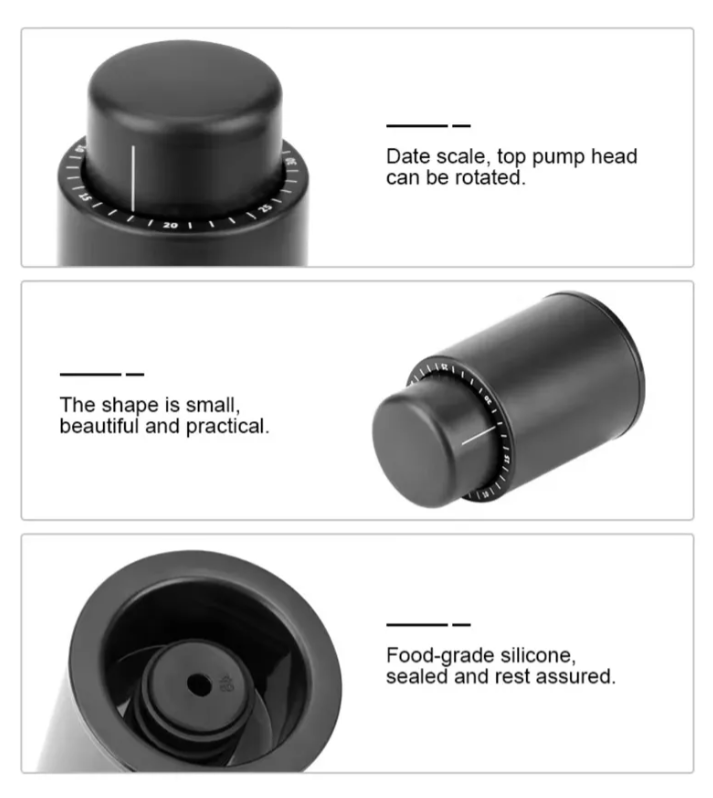-Función: El tapón de mantenimiento fresco al vacío puede extraer el exceso de aire en la botella de vino tinto sin terminar para lograr un estado de mantenimiento fresco, ¡que puede mantenerse fresco hasta 7 días!