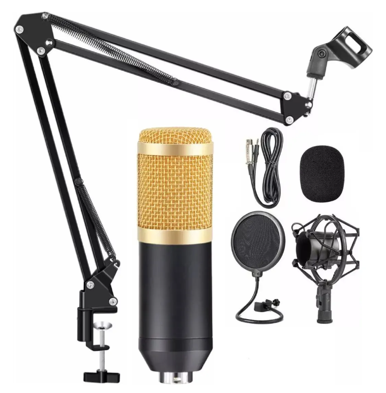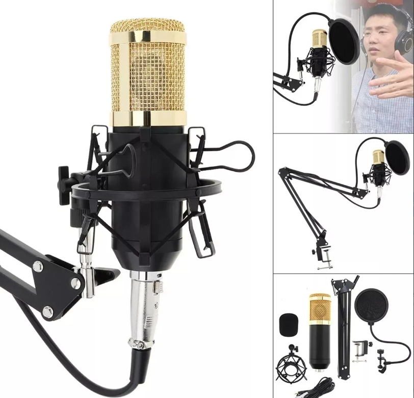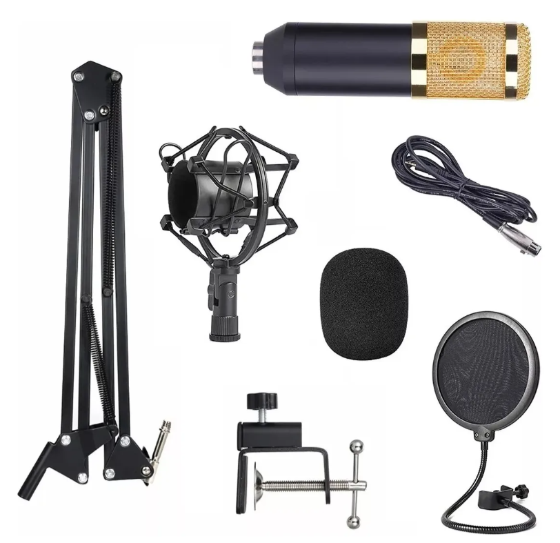 Kit de micrófono condensador de alta definición, ideal para conectar en PC o Notebook para streaming o grabación de pistas de audio en estudio profesional. Brazo articulado de acero, resistente y duradero, tipo plegable y montable en mesa de locutores. Brazos doblemente reforzados. Filtro Anti Pop que asegura pistas audibles y claras, sin silbidos ni balbuceos. Rompe Vientos que protege el micrófono contra interferencia del viento y sonidos de la base del cantante. Soporte Araña con ajuste de ángulo y perilla de bloqueo, reduce ruido de manejo y vibraciones. Cable XLR hembra a mini plug 3.5mm de 2.5 mts, compatible con equipos de audio y mezcladoras, y con OBS para streaming. No compatible con teléfono móvil y tablet PC. Patrón polar cardioide que minimiza ruido de fondo y aísla fuente de sonido principal.