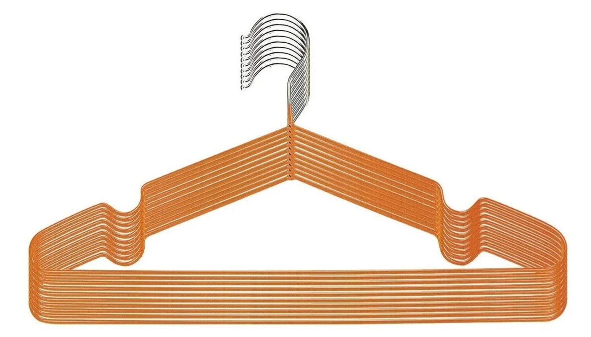 - Las perchas de metal con una buena estructura al ser más estrechas que las de madera son buena opción para los armarios pequeños al ocupar la mitad. Las puedes encontrar en tonos sofisticados como dorados o tonos cobres, para dar un aspecto más elegante en tu guardarropa.