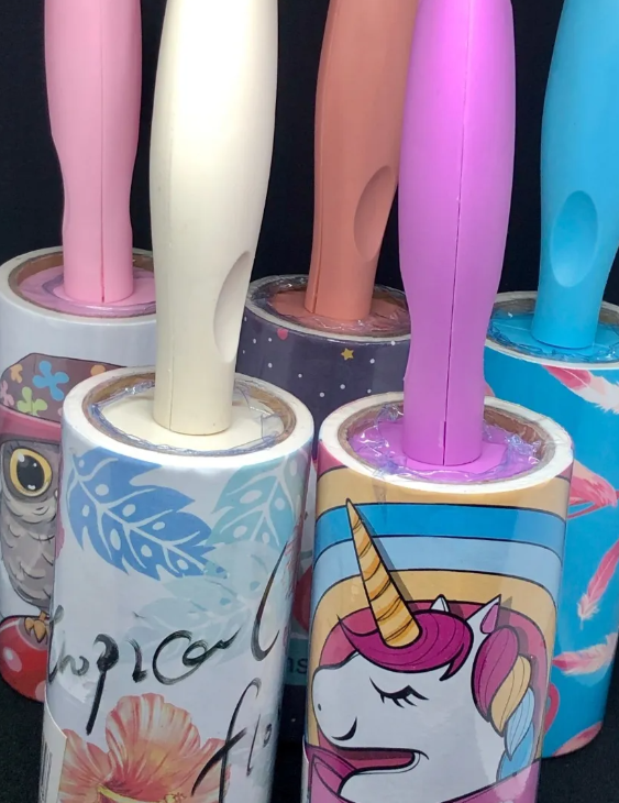 Rodillo con adhesivo y mango de plástico,