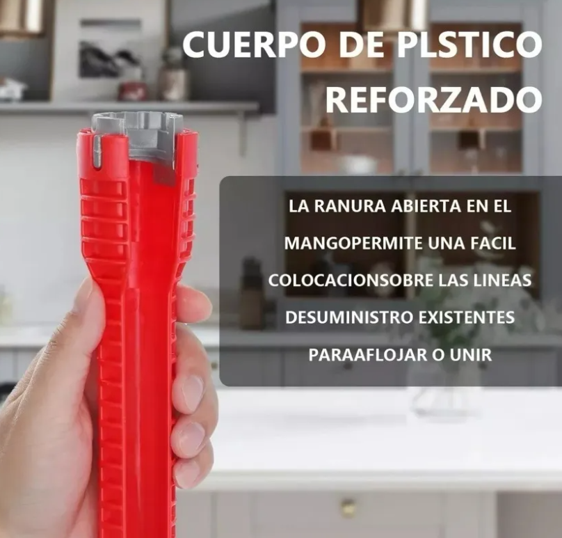 Se adapta al tamaño de las tuercas y tuberías de agua, así como al tamaño detallado de los grifos: esta llave es adecuada para tuercas hexagonal de 1/2 ". (DN15), 3/4 "(DN20) y 4 puntos, 6 puntos conector de tubería de agua.
