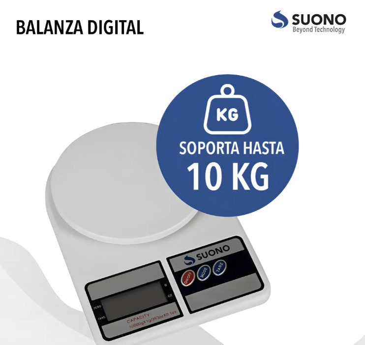 Si cocinás en grandes cantidades, esta balanza es lo que necesitás. Con una capacidad máxima de 10 kg, es ideal tanto para uso doméstico como profesional, permitiéndote pesar cada uno de los alimentos sin necesidad de dividirlos en partes.