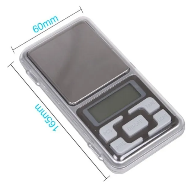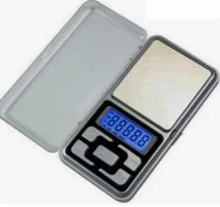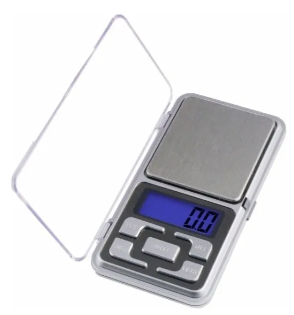 * Balanza Digital de bolsillo y de alta precisión con bandeja de acero inoxidable y tapa protectora transparente.