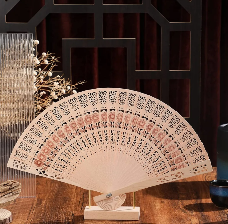 - Práctico y funcional: el abanico tallado plegable a mano de madera no solo se puede aplicar para refrescarse a altas temperaturas, sino que también se puede aplicar como elemento decorativo, adecuado para decorar casas, casas de té, bodas, ceremonias de graduación, también como accesorio de baile nupcial y pronto