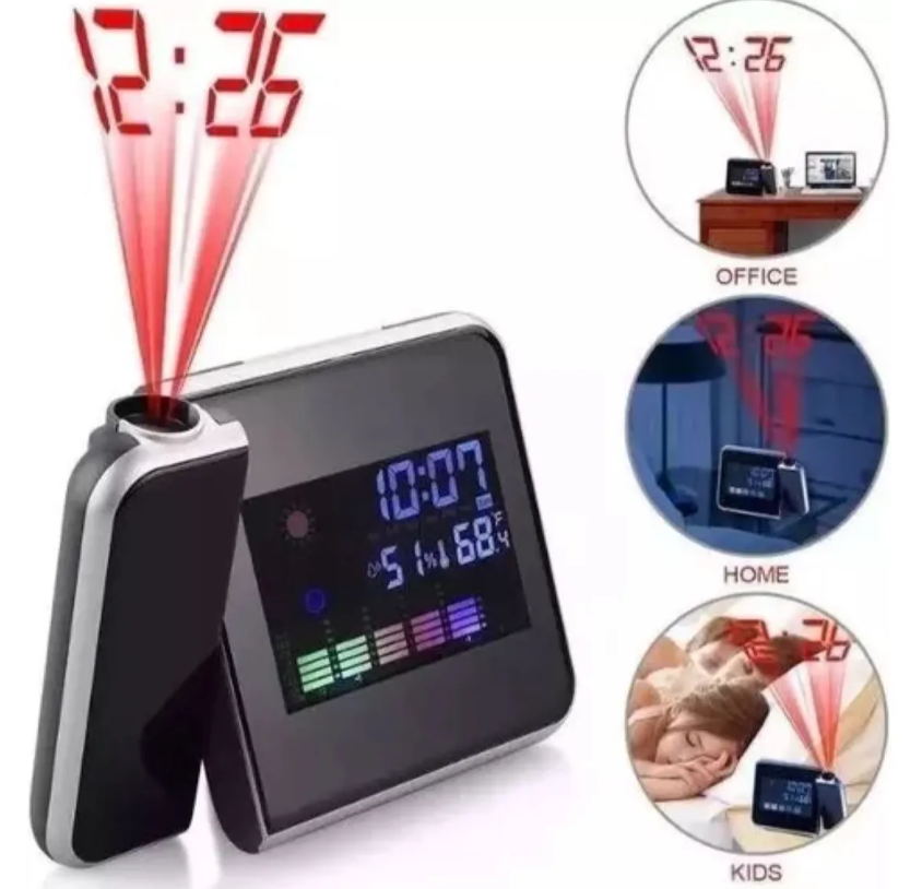 * Proyector de rotación de 180 grados, que le permite mostrar la hora en la pared o el techo.