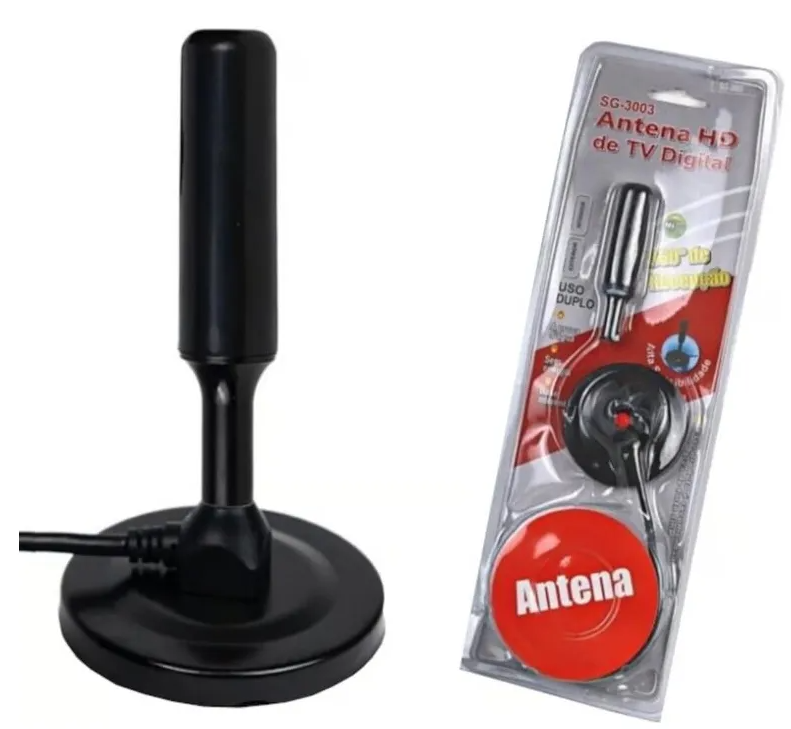 Antena para TV digital HD, esta antena es ideal para tu televisor HD Fácil de instalar, base plana con imán, la puedes instalar en cualquier lugar metálico y va quedar adherida con firmeza Cable de 5 metros de largo, Frecuencia UHF 470 - 862 MHZ. 75 OHM 360 Grados Tamaño 113x20x20 mm peso 500 grs.