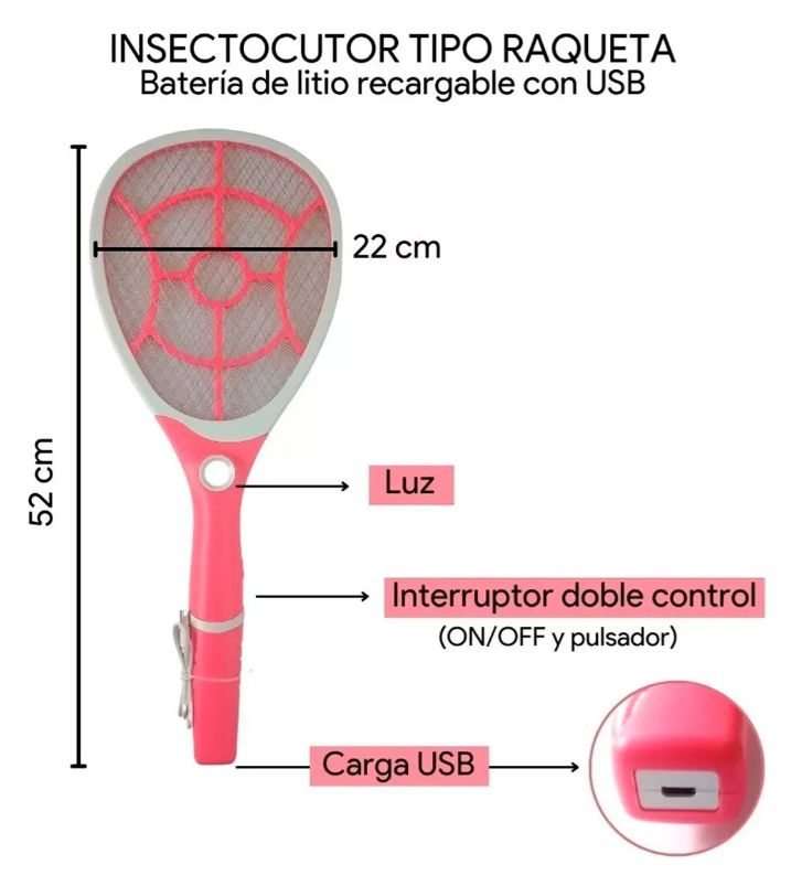 - Alimentación: cable USB (CARGADOR NO INCLUIDO)