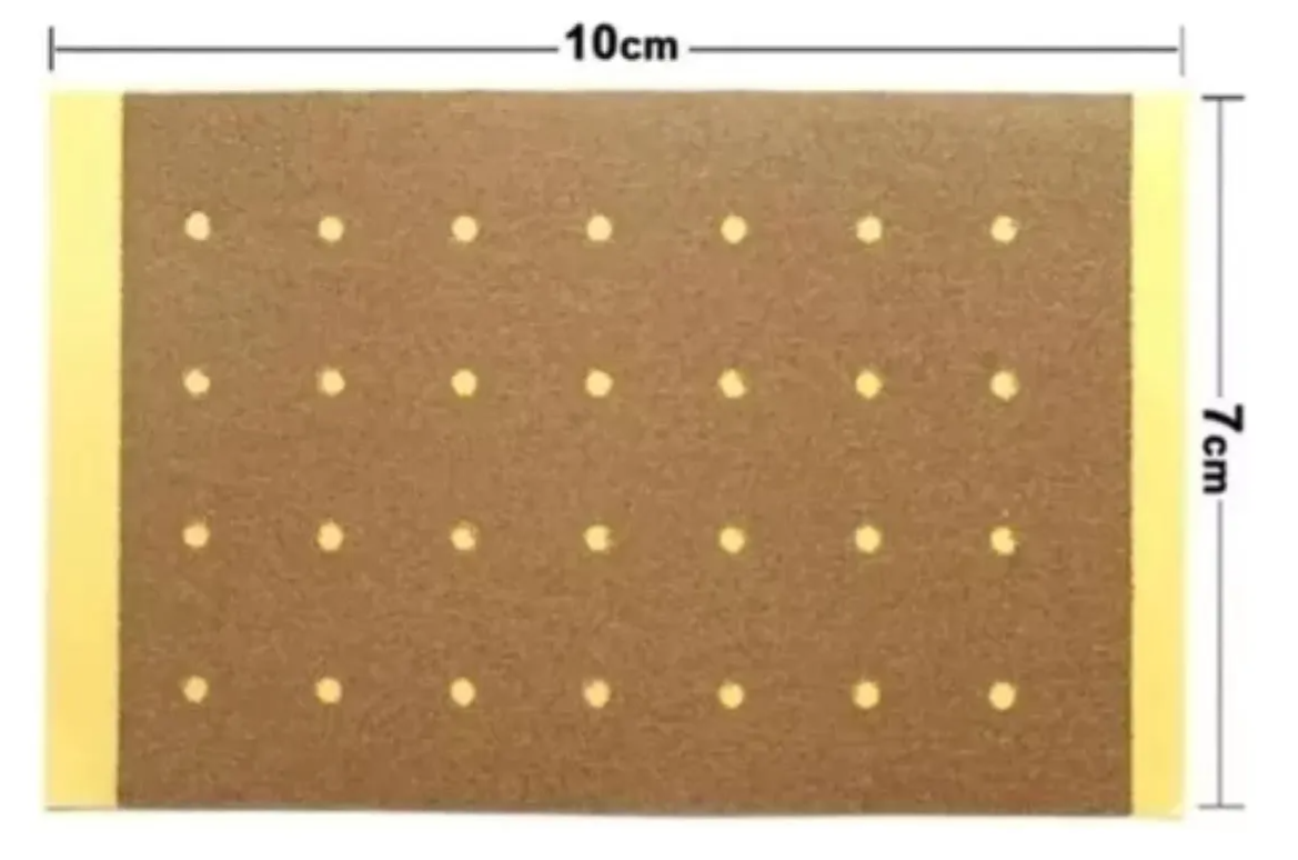 Descripción: parche elástico perforado de color marrón claro, tiene un olor agradable.