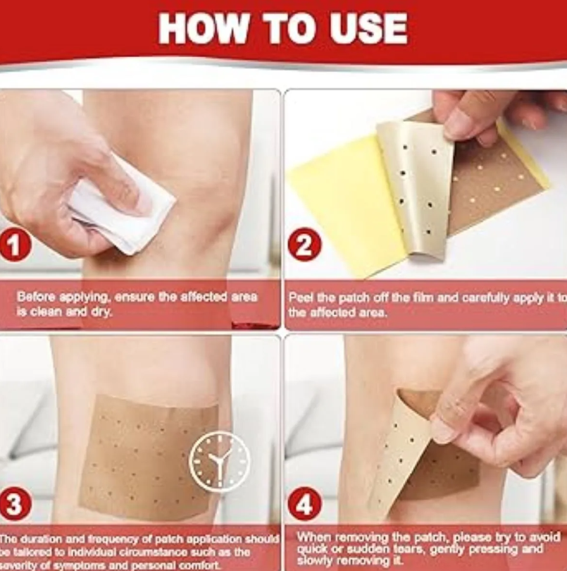 Método de aplicación: pegar en el lugar problemático, pre-desengrasar la piel con agua tibia o solución que contenga alcohol. Use desde varios minutos hasta 12 horas.