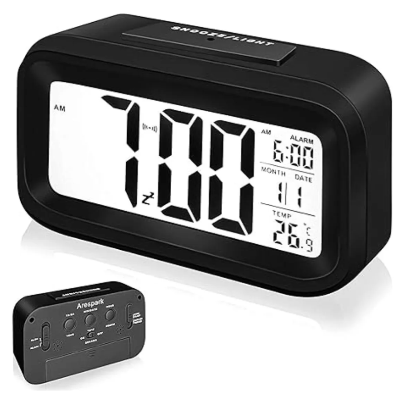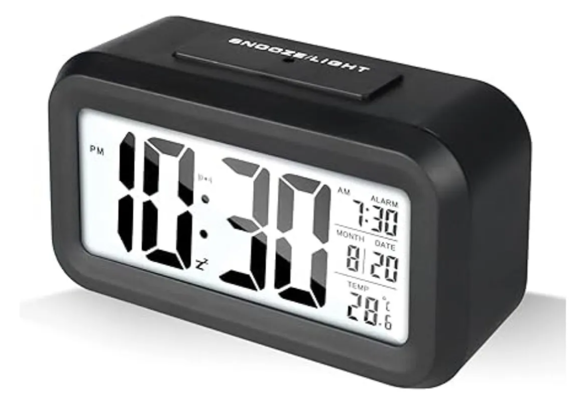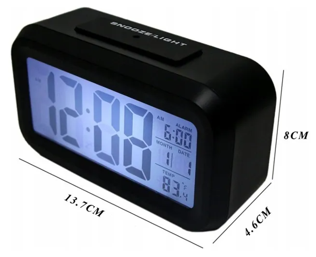 Despertador Digital de Mesa con Alarma, Luz Led, Opción de Postergar Alarma, Mide la temperatura de la Habitación.