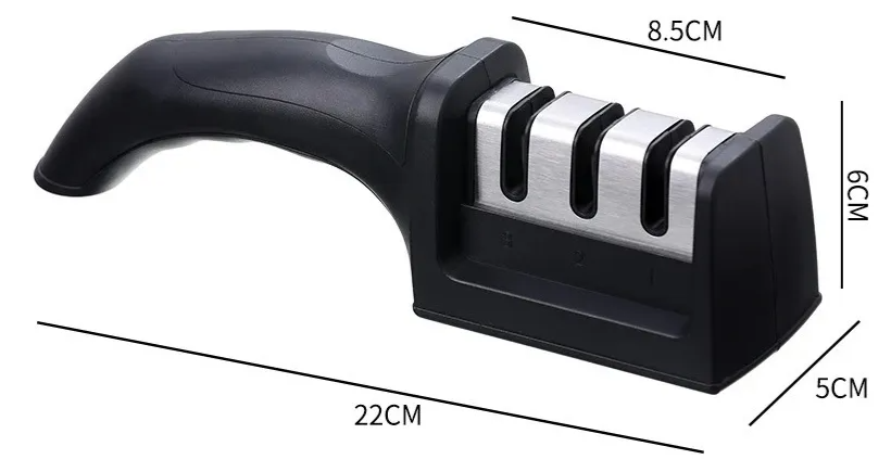 Es afilado, para eliminar todas las rebabas y embotamiento de los cuchillos. Es rápido, solo te lleva varios minutos conseguir un cuchillo nuevo. Seletable 3 etapa de molienda cubre todo tipo de cuchillos y usos. No importa si se trata de un cuchillo de cocina, un cuchillo de cocina o un cuchillo de frutas, etc., puede afilarlos nuevamente, incluso puede afilar su tijera, cincel, maquinilla de afeitar, etc.