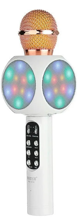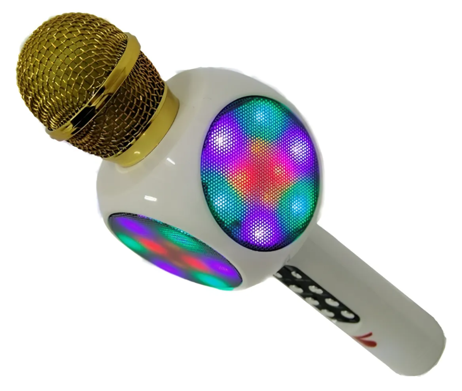 1, enciende el micrófono: pulsa el botón de encendido para encender o apagar el micrófono a 3 segundos: La luz azul aparecerá cuando el dispositivo esté encendido con luces LED en todos los lados, mantener el ritmo de la música