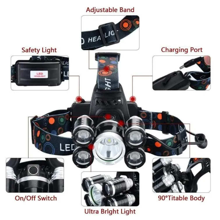 Linterna Frontal LED de Alta Potencia – 5 Focos