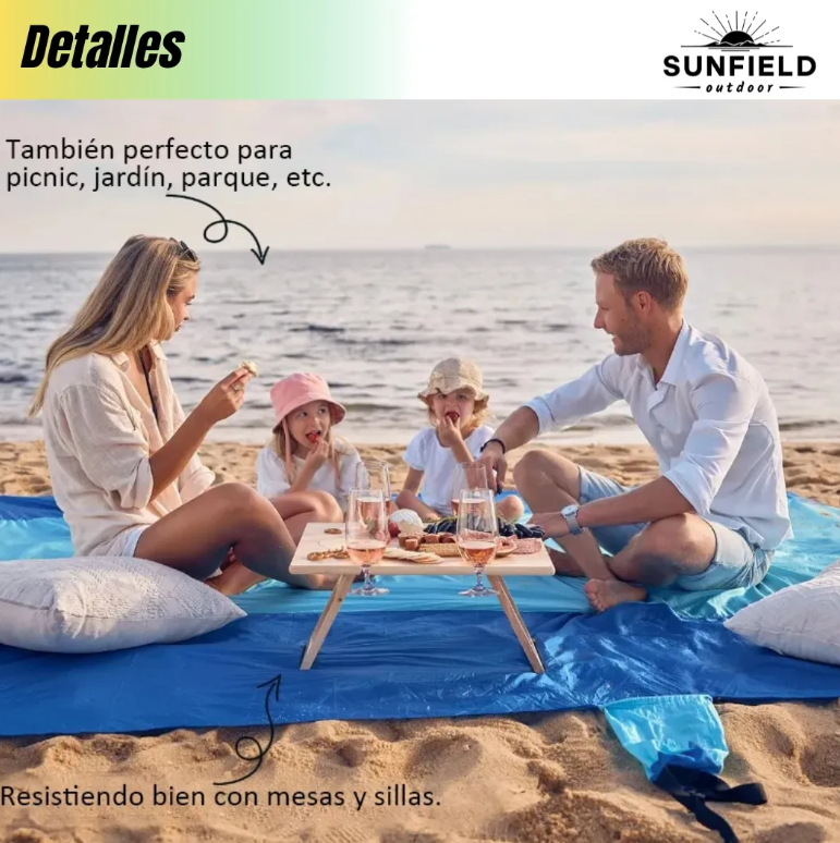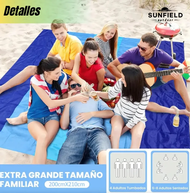 Llévala a la playa, al parque o al camping y disfruta de un espacio seco, limpio y espacioso con la Manta Sunfield Outdoor.