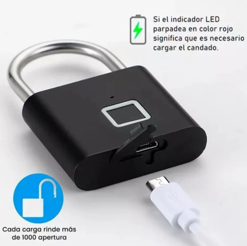 Cuando la huella digital está desbloqueada, el LED rojo parpadea continuamente indicando que el vol.tage es bajo y requiere carga.