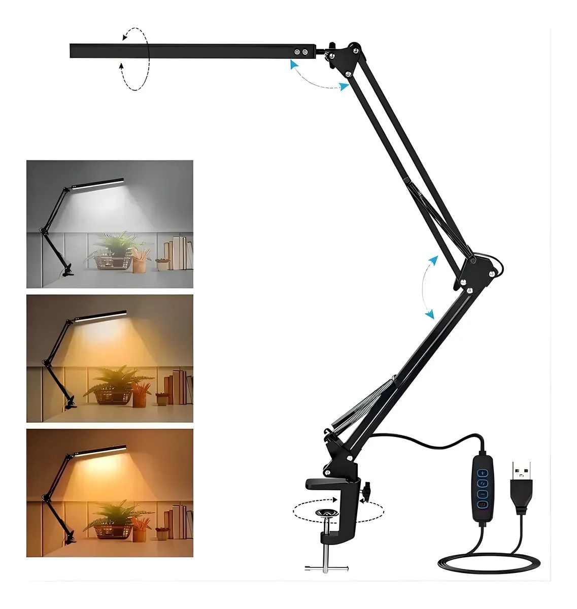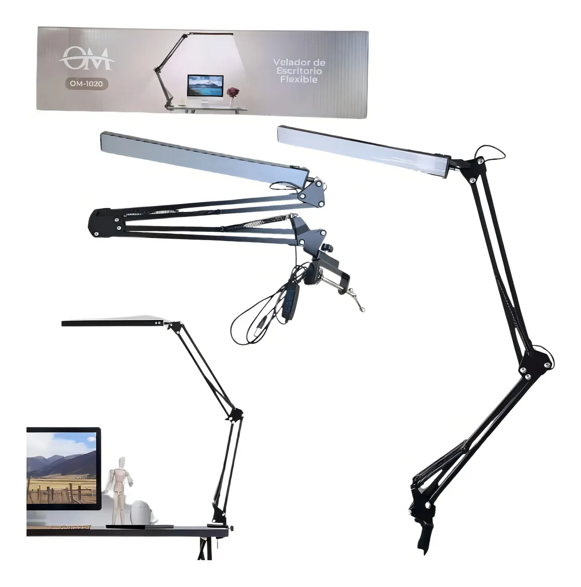 La lámpara velador LED articulada OM-1020 es la solución perfecta para quienes buscan funcionalidad y estilo en su espacio de trabajo o estudio. Con una altura total de 63 cm y un ancho de 26 cm, su diseño moderno se adapta a cualquier escritorio, proporcionando una iluminación eficiente y agradable. Fabricada con una estructura de metal resistente, esta lámpara garantiza durabilidad y estabilidad. Su tecnología de iluminación LED ofrece una luz brillante y clara, con una clasificación energética de A+, lo que la convierte en una opción sostenible para el hogar o la oficina. La pantalla de la lámpara está diseñada para maximizar la difusión de la luz, creando un ambiente acogedor y productivo. Además, su capacidad de rotación de 360° permite ajustar la dirección de la luz según las necesidades del usuario, facilitando la concentración y el trabajo en tareas detalladas. Ideal para estudiantes, profesionales y amantes de la lectura, la lámpara velador OM-1020 combina estética y funcionalidad, convirtiéndose en un elemento esencial en cualquier espacio. Mejora tu experiencia de trabajo y transforma tu entorno con esta lámpara versátil y elegante.